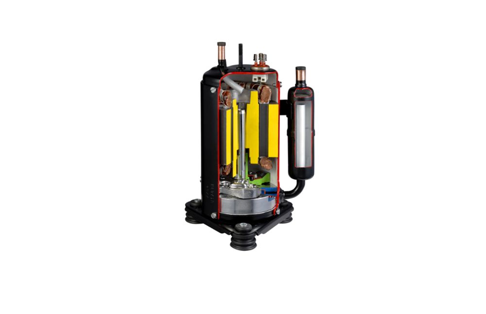 Компрессор – это самая большая механическая часть. Работа детали заключается в затягивании фреона, находящегося в газообразном состоянии. После этого происходит его сжатие, увеличение давления и перемещение в пневматический конденсатор. Этот элемент обеспечивает низкий уровень вибрации при работе, участвует в процессе изменения давления фреона, поддерживает постоянную циркуляцию.