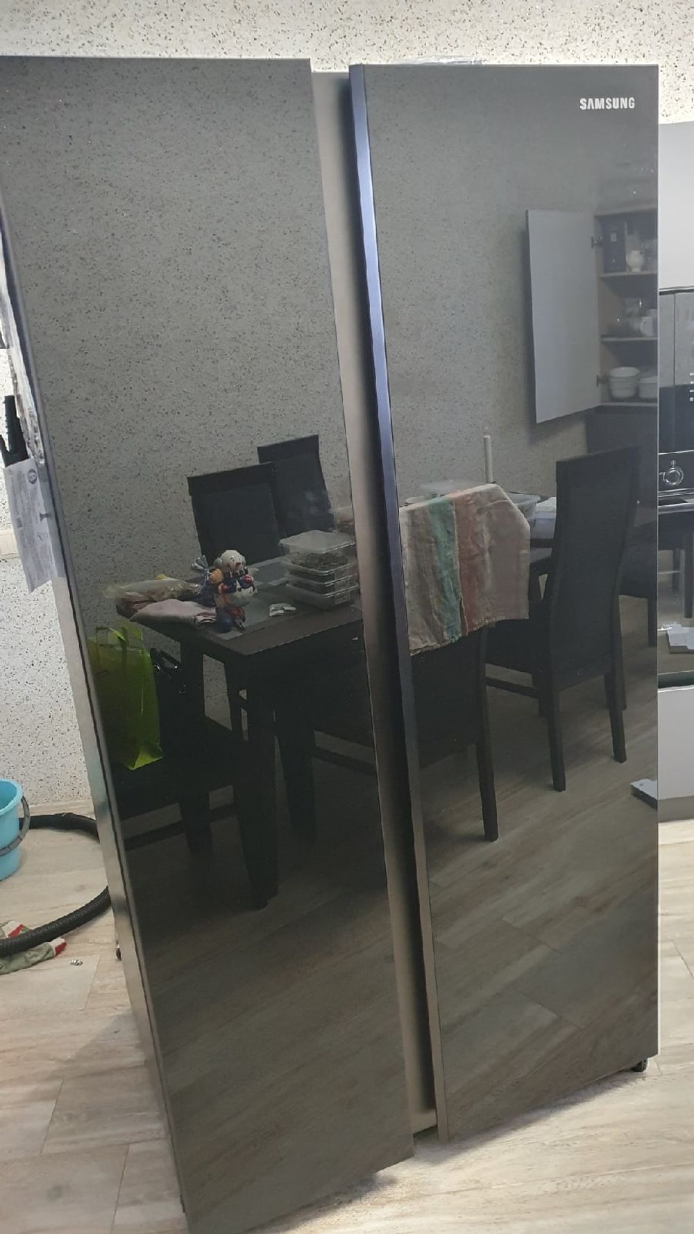 Ремонт холодильника Samsung на дому в Казани модель RS62R50312C. Неисправность была в отсутствии фреона, из за утечки в алюминиевому теплообменнику. Утечку обнаружили, запаяли, фреон заправили, холодильника самсунг работает исправно.