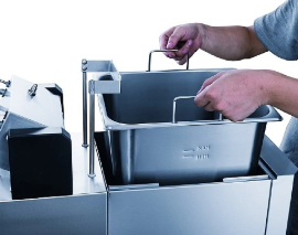 Фритюрница используется на кухнях кафе, ресторанов и точек быстрого питания для приготовления продуктов в большом количестве раскаленного масла. Оборудование обеспечивает стабильный нагрев и позволяет быстро получать равномерно прожаренный результат: от картофеля и куриных крыльев до овощных закусок и десертных изделий. Благодаря продуманной конструкции устройство подходит для непрерывной работы в часы высокой загрузки и помогает поддерживать одинаковое качество блюд на протяжении всего дня. Тэны расположены так, чтобы тепло распределялось равномерно по всему объему масла. Съемная корзина облегчает погружение ингредиентов и удобна при ежедневной очистке.