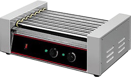 В работе заведений быстрого питания и общепита часто можно встретить такое оборудование как роликовый гриль. Модель EKSI HHD-05B используется для быстрой обжарки и поддержания сосисок для хот-догов Изготовленный из нерж. стали, гриль включает в себя терморегулятор, 5 ТЭНов и поддон для сбора жира.