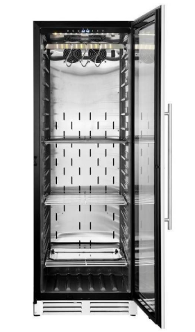 Шкаф для вызревания мяса предназначен для эксплуатации в бытовых условиях, а также в гостиницах, ресторанах, кафе и торговых предприятиях различных форматов. Он используется для охлаждения и поддержания необходимых параметров среды при созревании мясных изделий. Модель оборудована дверцей с замком и системой звукового оповещения. Корпус и элементы внутри изготовлены из пищевой нержавейки, дверца выполнена из закаленного стекла, устойчивого к механическим воздействиям.
