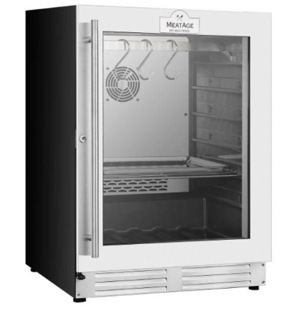 Шкаф для вызревания мяса предназначен для эксплуатации в бытовых условиях, а также в гостиницах, ресторанах, кафе и торговых предприятиях различных форматов. Он используется для охлаждения и поддержания необходимых параметров среды при созревании мясных изделий. Модель оборудована дверцей с замком и системой звукового оповещения. Корпус и элементы внутри изготовлены из пищевой нержавейки, дверца выполнена из закаленного стекла, устойчивого к механическим воздействиям.