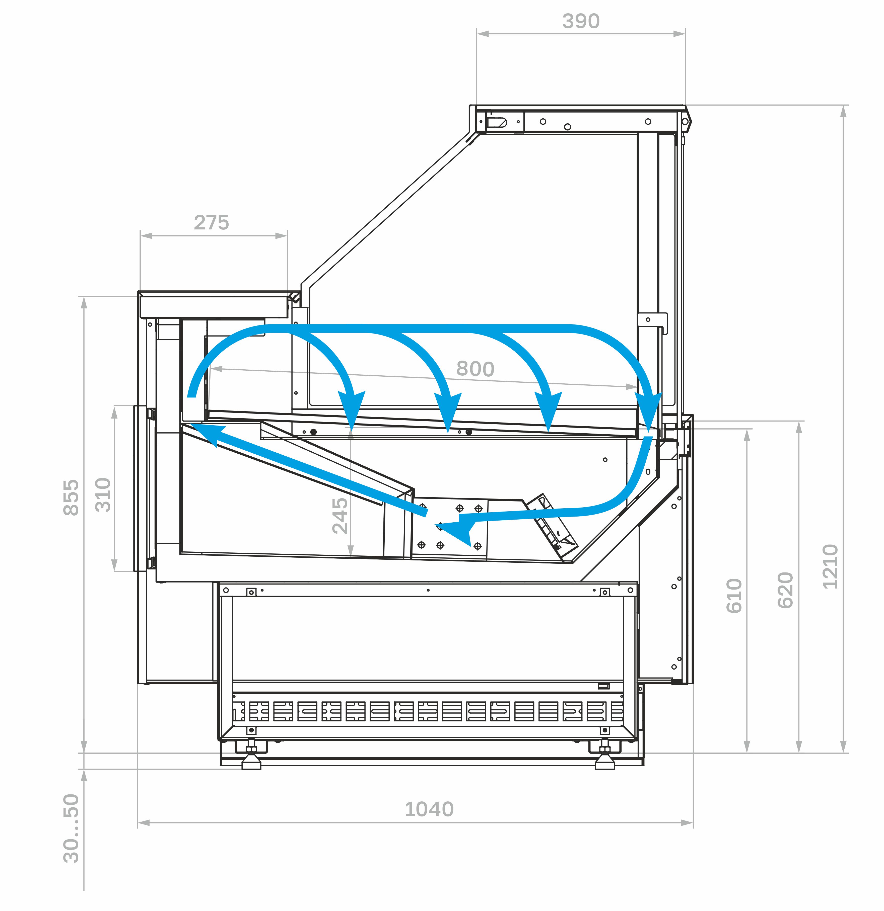 Гастрономическая витрина для использования в организациях общепита и в торговых залах магазинов применяется для охлаждения, недолгого хранения, демонстрации и реализации продуктов питания. В витрине удобно размещать салаты, молочную продукцию и различные гастрономические изделия, обеспечивая им необходимый температурный режим и хороший обзор для покупателей. Конструкция предусматривает дополнительный накопитель, который позволяет увеличить объем хранения и облегчает работу персонала при пополнении выкладки. Экспозиционная зона выполнена так, чтобы продукция была хорошо видна со стороны покупателей и легко доступна для обслуживания. Рабочая поверхность и столешница изготовлены из шлифованной нержавеющей стали – материала, устойчивого к износу, влаге и регулярной санитарной обработке, что важно для оборудования, используемого в сфере общественного питания.