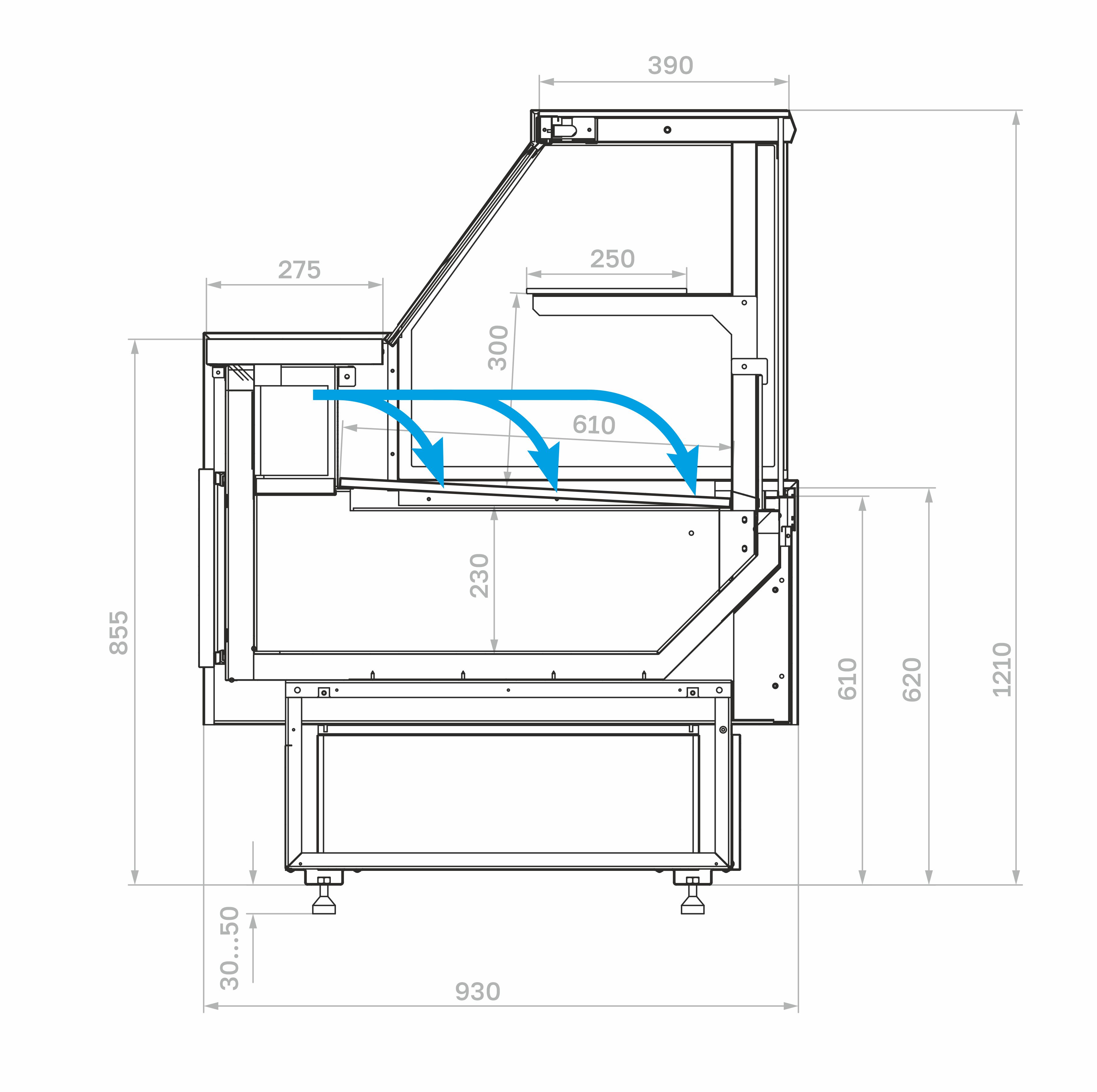 Конструкция включает в себя охлаждаемую камеру с прозрачными элементами, обеспечивающими хороший обзор выкладки. Внутри есть экспозиционная поверхность для размещения продуктов. Система охлаждения поддерживает стабильную температуру, что позволяет использовать витрину для гастрономии, салатов, молочных изделий, десертов и других скоропортящихся товаров.
