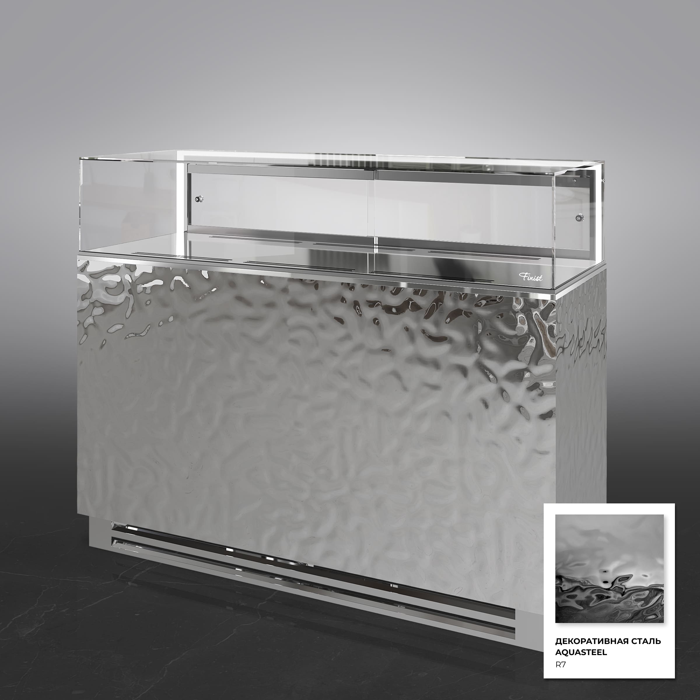 Предусмотрена возможность исполнения витрины под выносной холод. Также возможно изготовление модели на каркасе с фасадами.