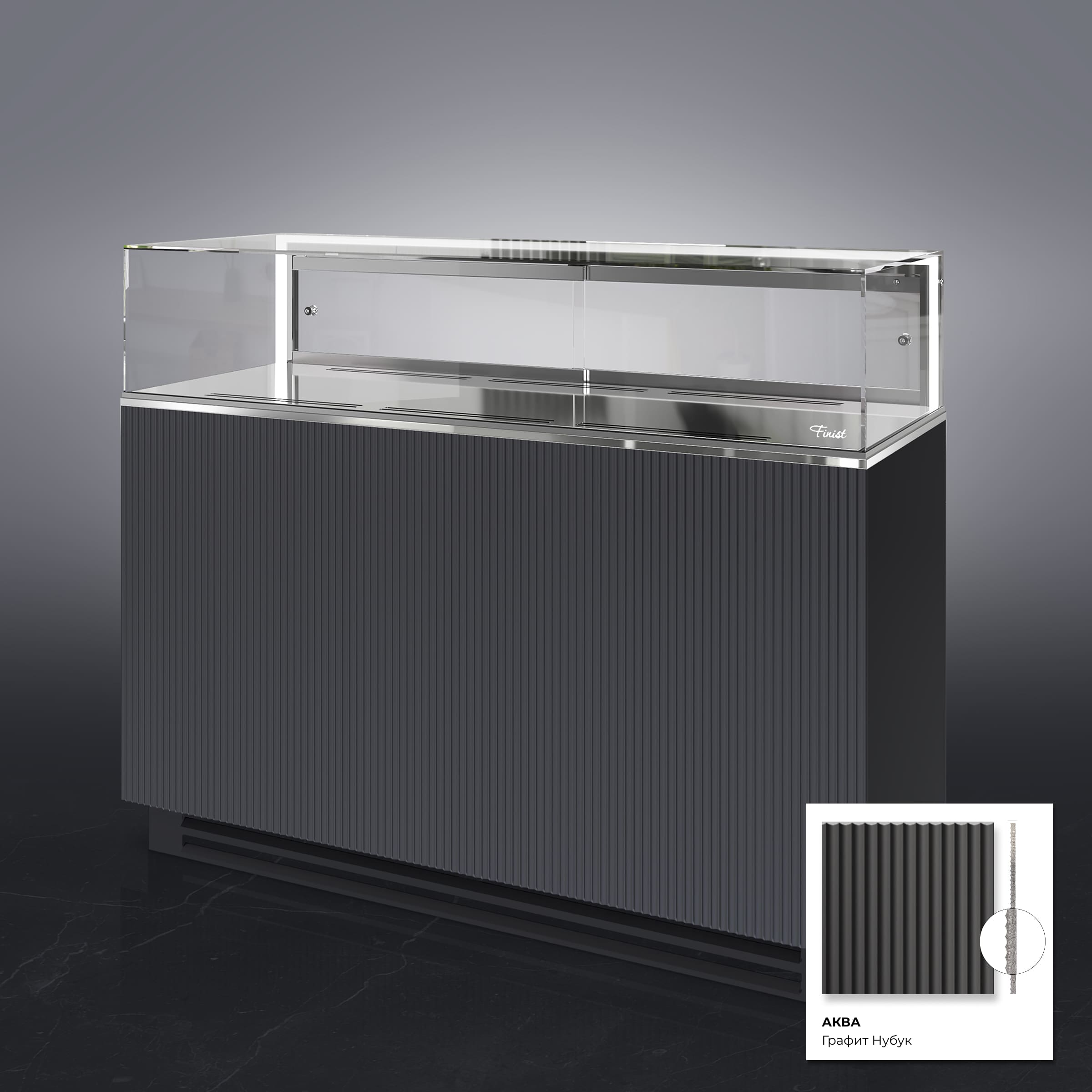 Витрина гармонично интегрируется в торговый интерьер благодаря фасадам, которые могут быть облицованы МДФ по выбору заказчика или окрашены в любой оттенок по каталогу RAL. Единая концепция серии LUX позволяет формировать кондитерские линии различной длины и конфигурации.