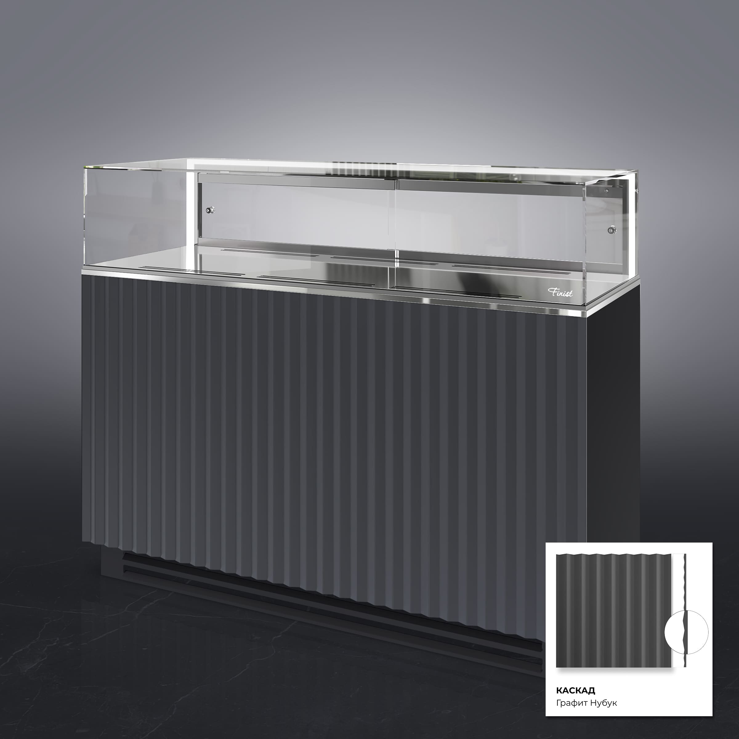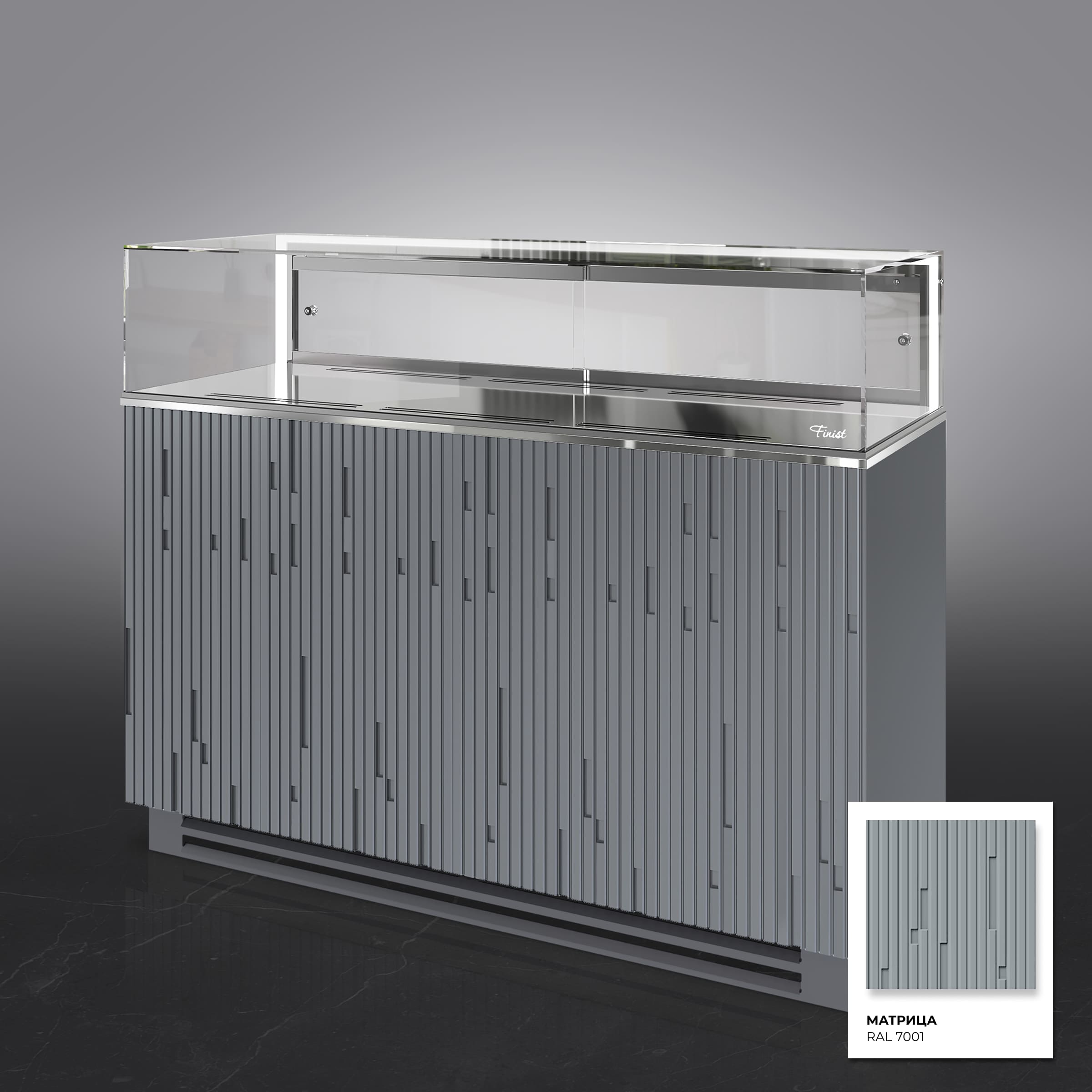 Предусмотрена возможность исполнения витрины под выносной холод. Также возможно изготовление модели на каркасе с фасадами.