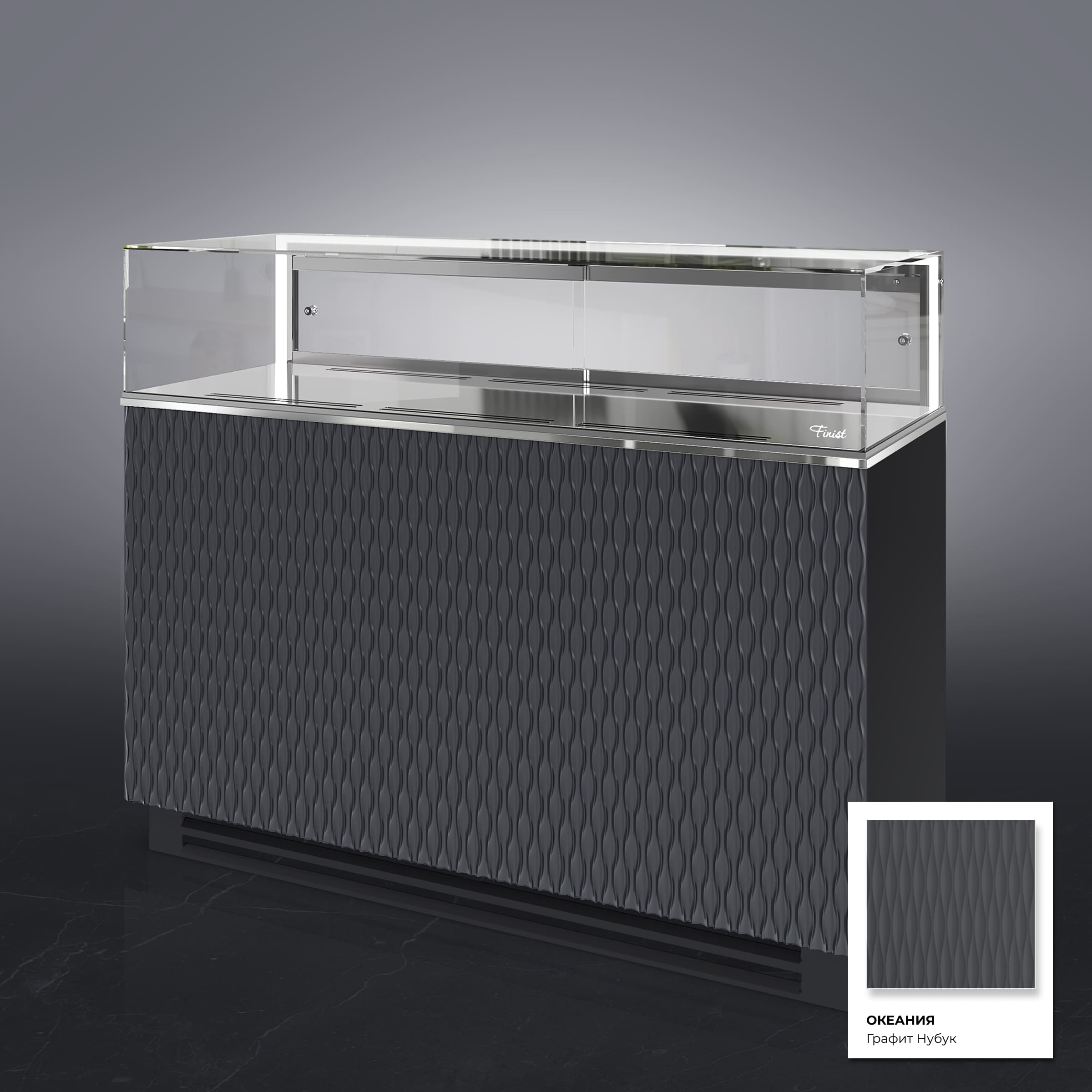 Витрина гармонично интегрируется в торговый интерьер благодаря фасадам, которые могут быть облицованы МДФ по выбору заказчика или окрашены в любой оттенок по каталогу RAL. Единая концепция серии LUX позволяет формировать кондитерские линии различной длины и конфигурации.