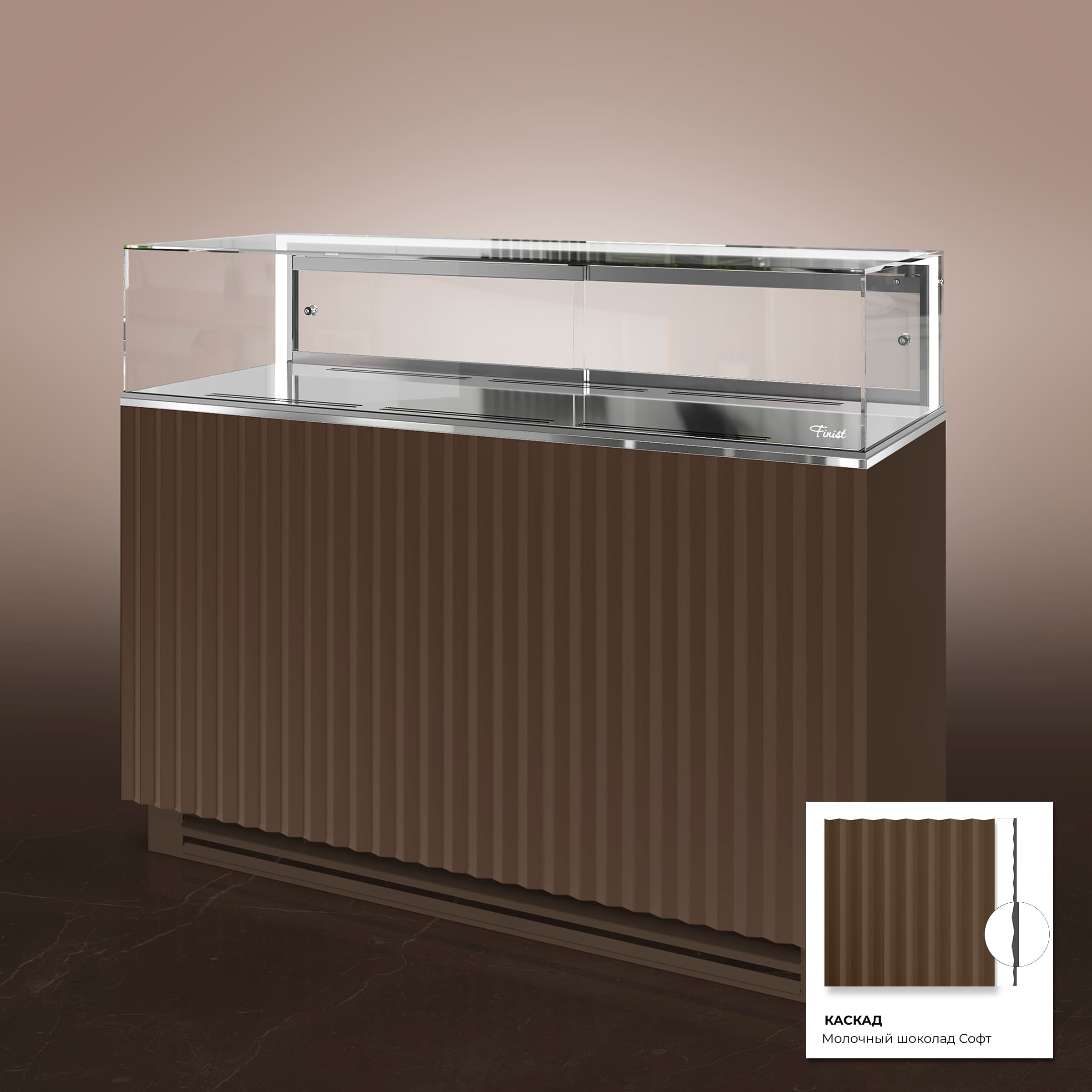 Витрина гармонично интегрируется в торговый интерьер благодаря фасадам, которые могут быть облицованы МДФ по выбору заказчика или окрашены в любой оттенок по каталогу RAL. Единая концепция серии LUX позволяет формировать кондитерские линии различной длины и конфигурации.