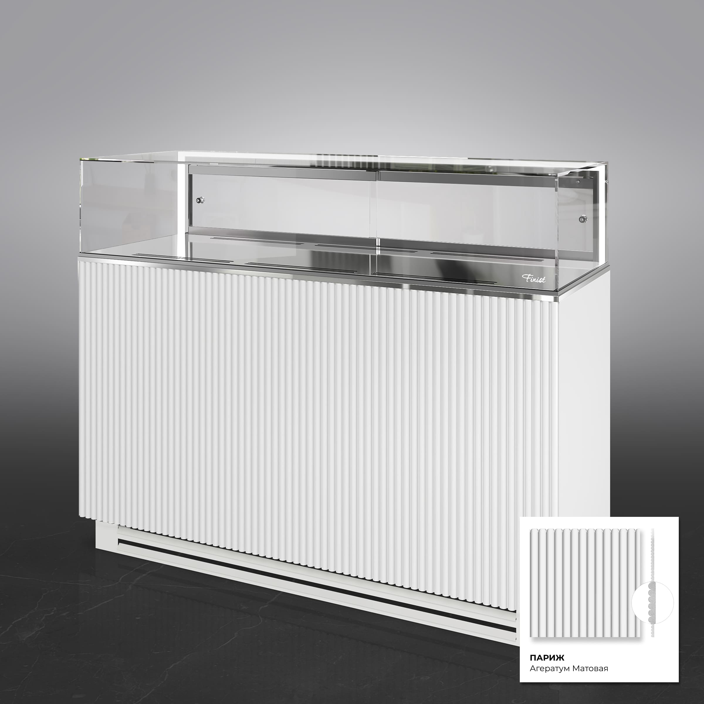 Витрина гармонично интегрируется в торговый интерьер благодаря фасадам, которые могут быть облицованы МДФ по выбору заказчика или окрашены в любой оттенок по каталогу RAL. Единая концепция серии LUX позволяет формировать кондитерские линии различной длины и конфигурации.