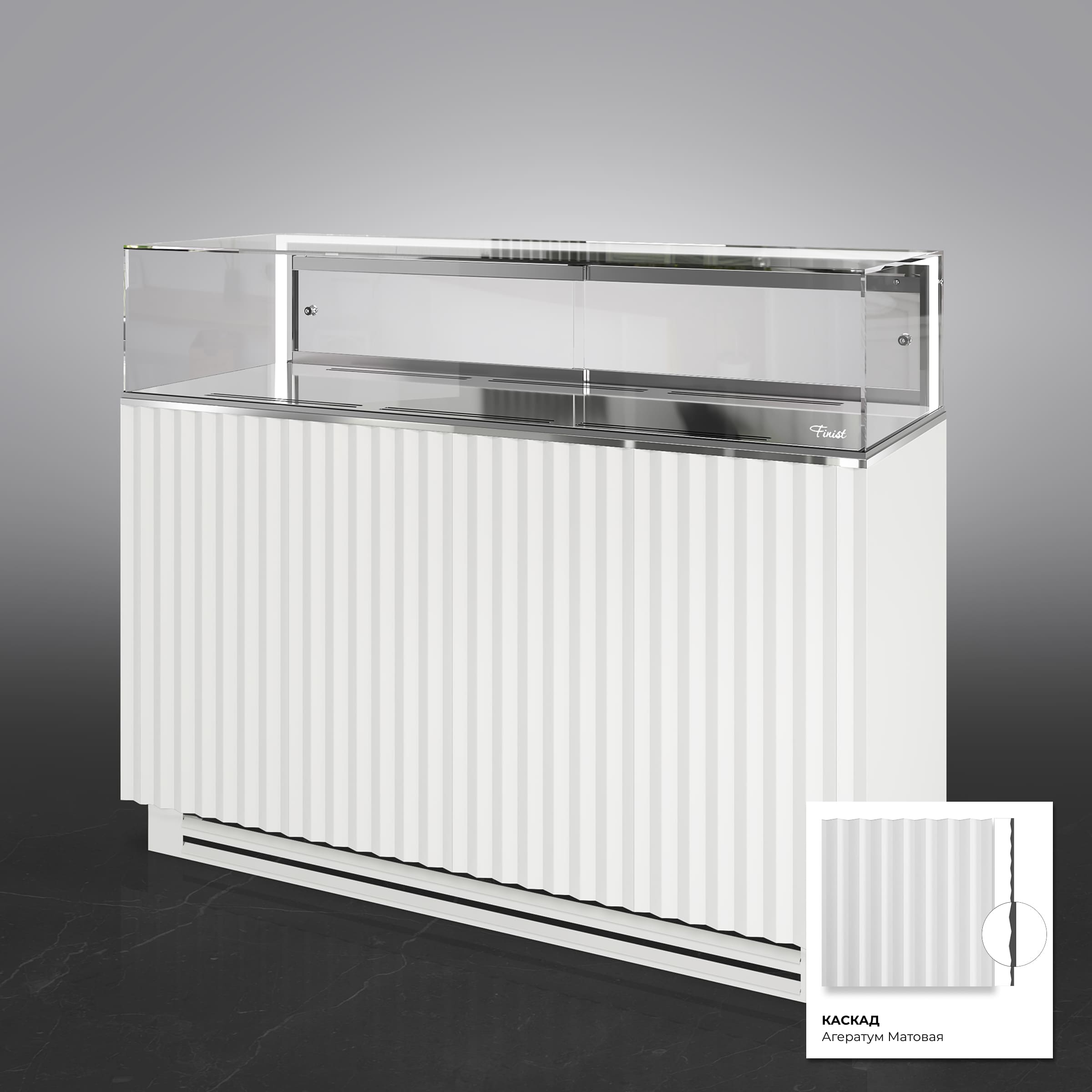 Витрина гармонично интегрируется в торговый интерьер благодаря фасадам, которые могут быть облицованы МДФ по выбору заказчика или окрашены в любой оттенок по каталогу RAL. Единая концепция серии LUX позволяет формировать кондитерские линии различной длины и конфигурации.