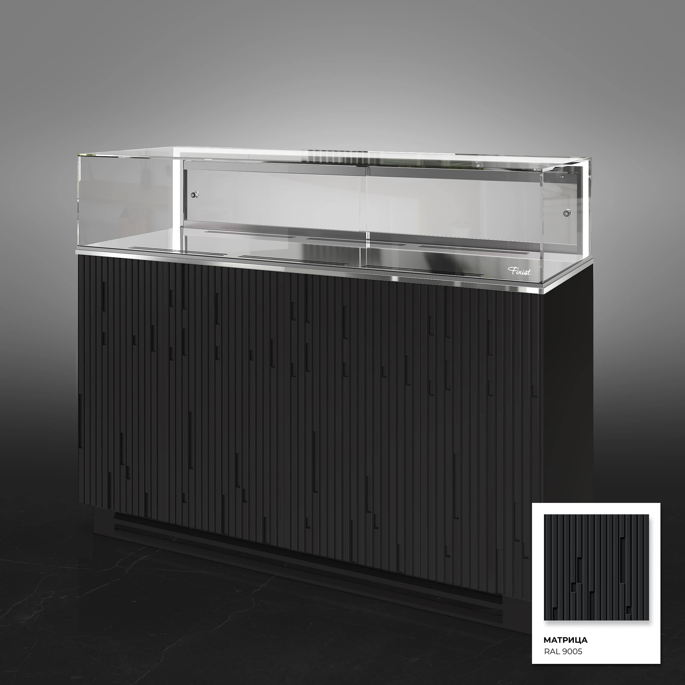 Витрина гармонично интегрируется в торговый интерьер благодаря фасадам, которые могут быть облицованы МДФ по выбору заказчика или окрашены в любой оттенок по каталогу RAL. Единая концепция серии LUX позволяет формировать кондитерские линии различной длины и конфигурации.