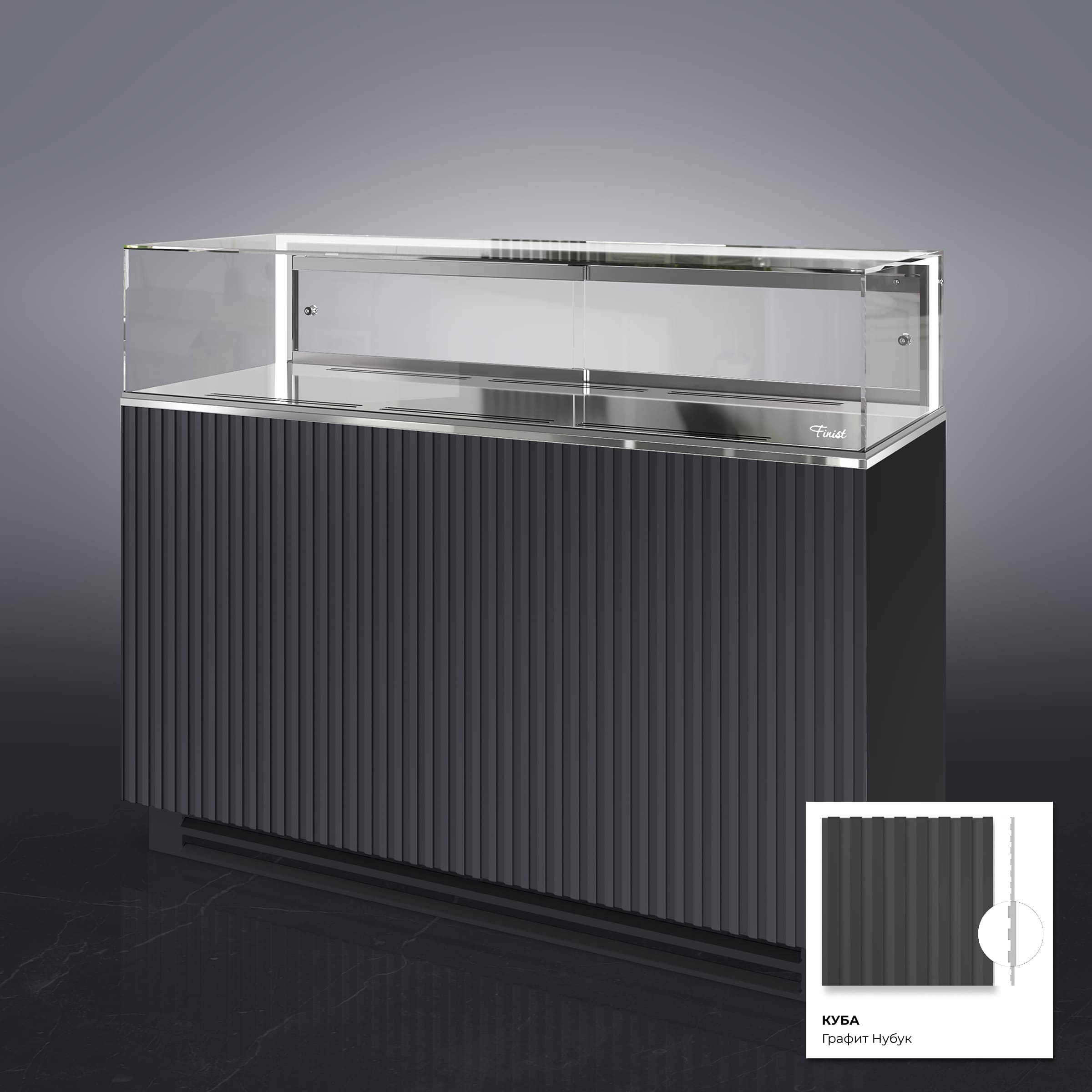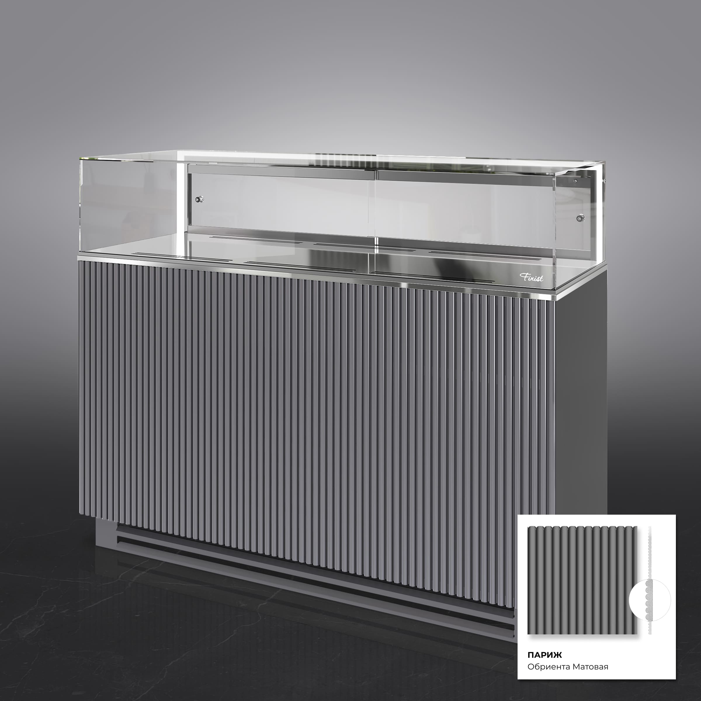 Предусмотрена возможность исполнения витрины под выносной холод. Также возможно изготовление модели на каркасе с фасадами.