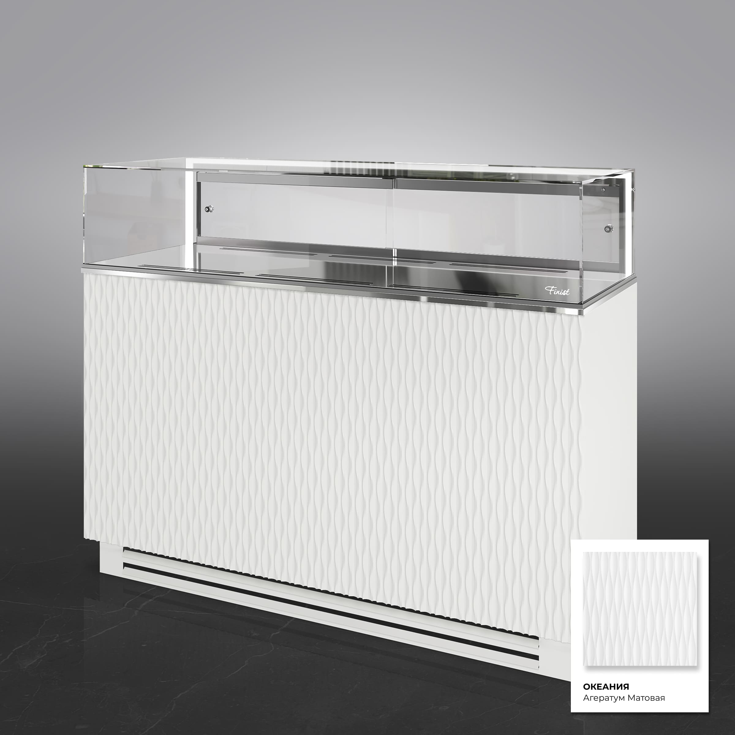 Витрина гармонично интегрируется в торговый интерьер благодаря фасадам, которые могут быть облицованы МДФ по выбору заказчика или окрашены в любой оттенок по каталогу RAL. Единая концепция серии LUX позволяет формировать кондитерские линии различной длины и конфигурации.