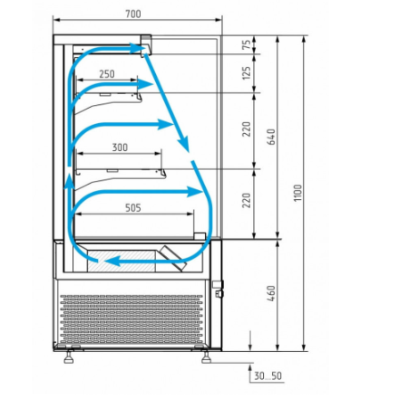 Кондитерская витрина – это оборудование для охлаждения, недолгого хранения и демонстрирования десертов и выпечки. Она эксплуатируется в ресторанах, кафетериях, кондитерских и иных организациях общепита и торговли. Благодаря динамическому охлаждению, по всему объему внутри температура распределяется эффективно и равномерно. Термоизоляцию обеспечивает пенополиуретановая изоляция корпуса. Зона выкладки сделана из матового стекла, полки – из стекла, а корпус – из пластика и стали. Эксплуатировать оборудование рекомендуется при относительной влажности до 60% и температуре 12-25°С.