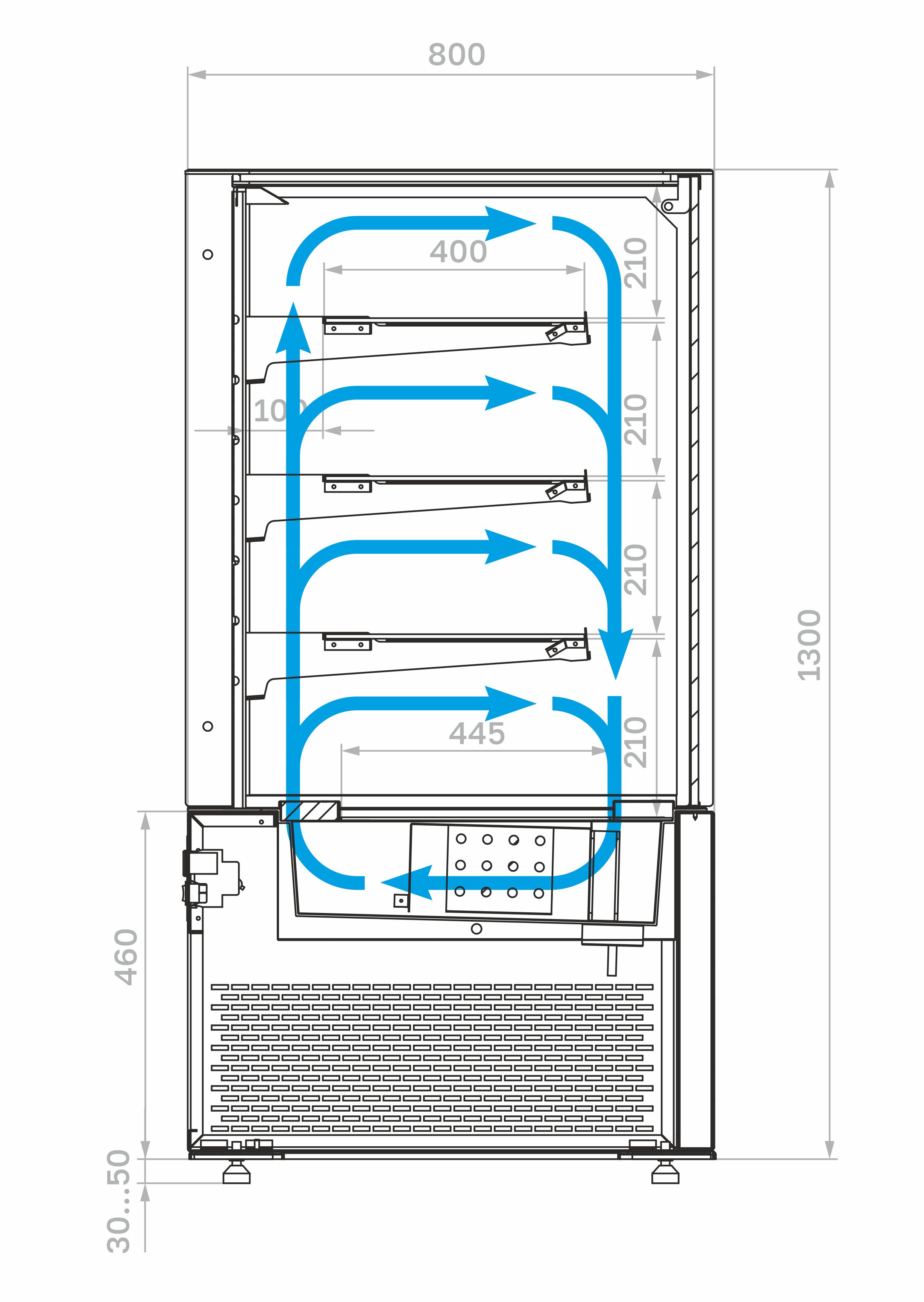 Конструкция витрины продумана так, чтобы обеспечить удобный доступ к продукции со стороны персонала и хороший обзор для покупателей. Внутреннее пространство организуется с помощью полок, позволяющих рационально распределить ассортимент. Поддержание заданного температурного режима способствует сохранению текстуры кремов и основы изделий на протяжении всего рабочего времени.