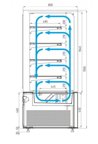 Кондитерская витрина – это оборудование для охлаждения, недолгого хранения и демонстрирования сладкой и несладкой выпечки. Она эксплуатируется в кофейнях, кондитерских и иных организациях общепита и торговли. Благодаря динамическому охлаждению, внутри температура распределяется равномерно. Термоизоляцию обеспечивает пенополиуретановая изоляция. Пространство для демонстрации сделано из матового стекла, полки – из стекла, а корпус – из пластика и стали. Эксплуатировать оборудование рекомендуется при относительной влажности не больше 60% и температуре 12-25°С.