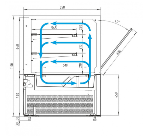 Кондитерская витрина – это оборудование для охлаждения, недолгого хранения и демонстрирования десертов и выпечки. Она эксплуатируется в ресторанах, кафетериях, кондитерских и иных организациях общепита и торговли. Благодаря динамическому охлаждению, по всему объему внутри температура распределяется эффективно и равномерно. Термоизоляцию обеспечивает пенополиуретановая изоляция корпуса. Корпус сделан из пластика и стали. Эксплуатировать оборудование рекомендуется при относительной влажности до 60% и температуре 12-25°С.
