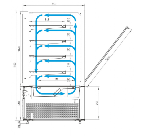 Кондитерская витрина – это оборудование для охлаждения, недолгого хранения и демонстрирования десертов и выпечки. Она эксплуатируется в ресторанах, кафетериях, кондитерских и иных организациях общепита и торговли. Благодаря динамическому охлаждению, по всему объему внутри температура распределяется эффективно и равномерно. Термоизоляцию обеспечивает пенополиуретановая изоляция корпуса. Корпус сделан из пластика и стали. Эксплуатировать оборудование рекомендуется при относительной влажности до 60% и температуре 12-25°С.