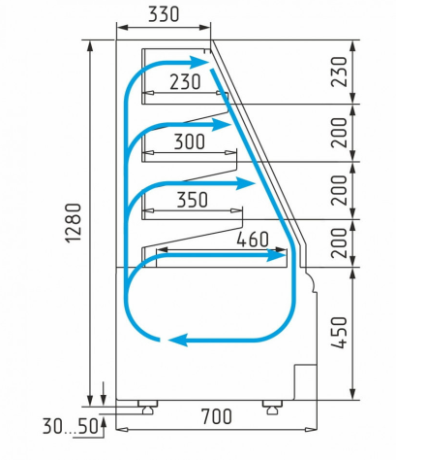 Напольная витрина подходит для установки в ресторанах, кондитерских, кафетериях и других организациях общепита и торговли. В ней охлаждают, непродолжительно хранят и демонстрируют хлебобулочные и кондитерские изделия, десерты. Оборудование имеет динамическую охлаждающую систему, поэтому распределение температуры происходит равномерно и эффективно. Витрина оборудована стеклопакетами с двух сторон и задними распашными створками со стеклопакетом. Надежная термоизоляция обеспечивается благодаря пенополиуретановой изоляции. Корпус сделан из окрашенной стали.