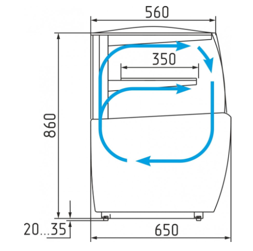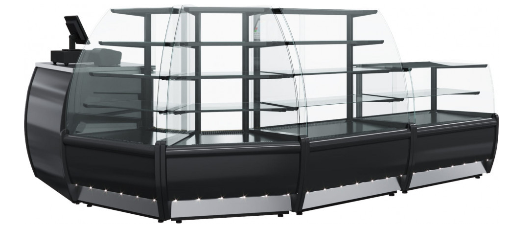 Напольная витрина разработана для охлаждения, непродолжительного хранения и демонстрирования различных хлебобулочных и кондитерских изделий, десертов. Она подходит для ресторанов, кафетериев, кондитерских и прочих организаций общепита и торговли. Равномерное распределение по всему объему камеры обеспечивает динамическая охлаждающая система. Сбоку у нее имеются прямые стекла, спереди – выгнутое стекло, а раздвижные шторки сзади из органического стекла. Надежную термоизоляцию обеспечивает пенополиуретановая изоляция. Бока сделаны из пластика, а корпус – из пищевой стали. Устанавливать витрину рекомендуется не меньше 2 м от приборов отопления. Загораживать воздуховоды нельзя.