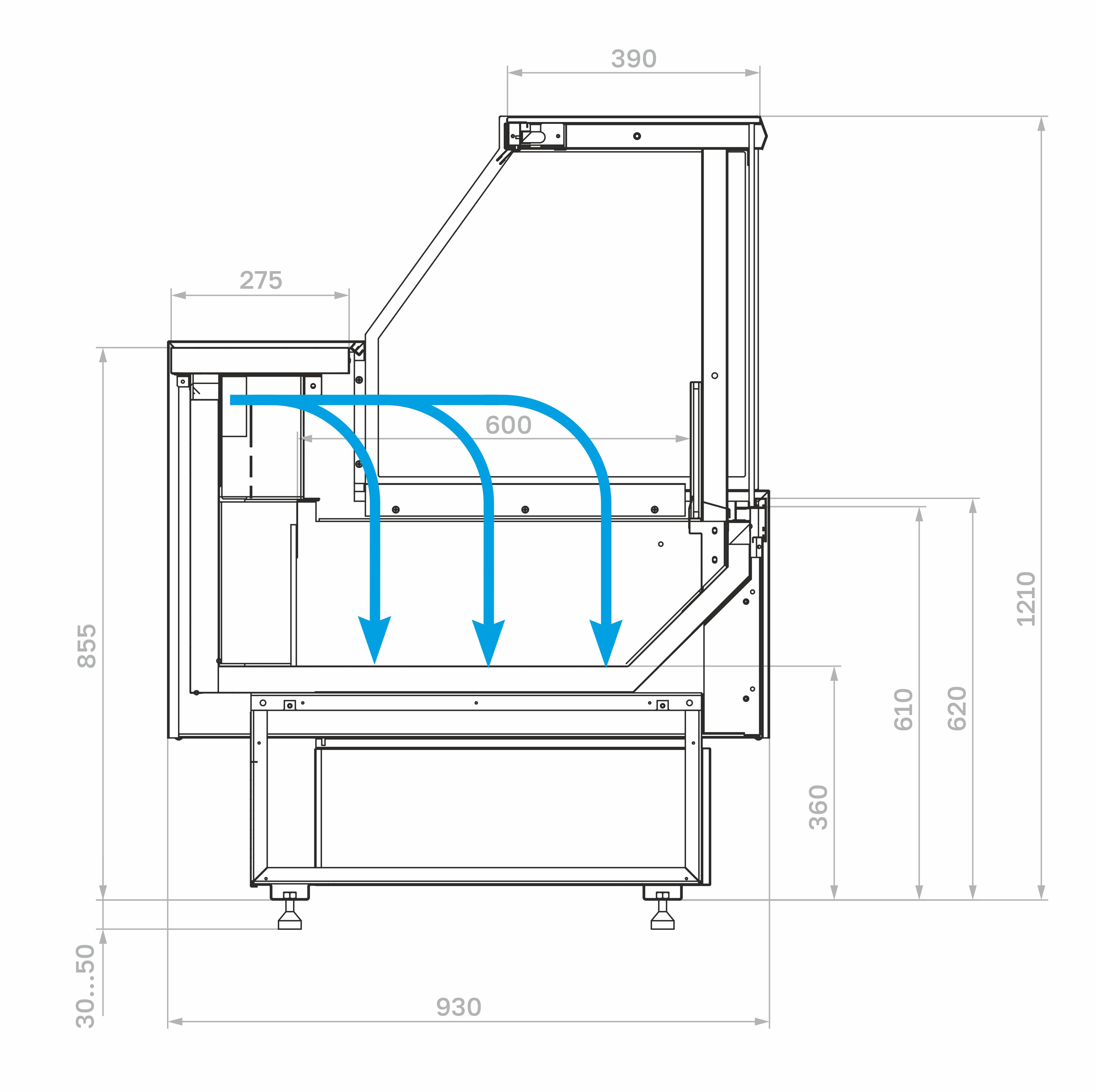 Конструкция включает в себя охлаждаемую камеру с прозрачными элементами, обеспечивающими хороший обзор выкладки. Внутри есть экспозиционная поверхность для размещения продуктов. Система охлаждения поддерживает стабильную температуру, что позволяет использовать витрину для гастрономии, салатов, молочных изделий, десертов и других скоропортящихся товаров.
