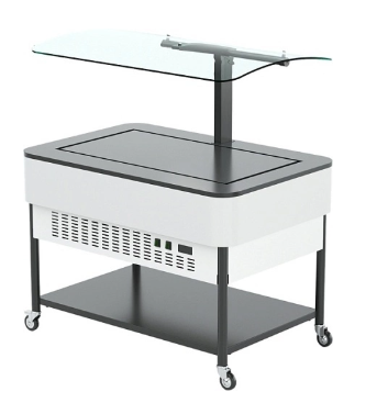 Островной прилавок с охлаждаемой поверхностью – это модуль, в котором холод подается равномерно через рабочую плоскость. Он поддерживает невысокую стабильную температуру по всей площади, чтобы салаты, закуски, напитки и свежие ингредиенты оставались аппетитными и не увлажнялись от перепада тепло-холода. Блюда не скрыты за стеклом, они доступны сразу, и гость может легко выбрать и взять нужное. При этом охлаждаемая поверхность незаметно работает на сохранение качества блюд даже в условиях активной раздачи. Конструкция продумана для ежедневной нагрузки, так как поверхность не боится частой очистки, а регулировка температуры позволяет адаптировать режим под разные типы продуктов. На таком прилавке еда выглядит естественно, аккуратно и вызывает аппетит.