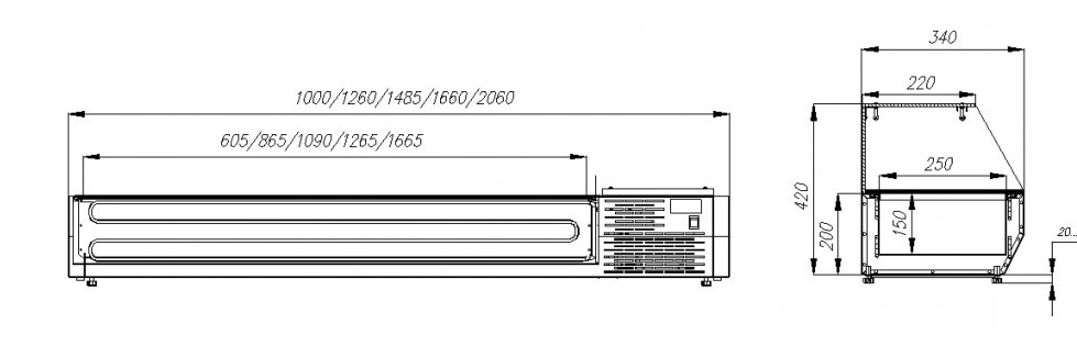 Холодильная витрина – это оборудование со стеклянным колпаком, в котором охлаждают, непродолжительно хранят и демонстрируют уже приготовленные блюда, ингредиенты для пиццы и салатов. Его можно установить в качестве дополнительного элемента прилавков, стоек в баре, столов для пиццы и холодильных столов. Витрина подходит для эксплуатации в любых заведениях общепита и торговли. Экспозиционная поверхность и корпус сделаны из пищевой нержавейки. Благодаря пенополиуретановой изоляции, достигается уменьшение потребления электрической энергии и поддержание установленного температурного режима. В комплектацию не включены гастрономические емкости.