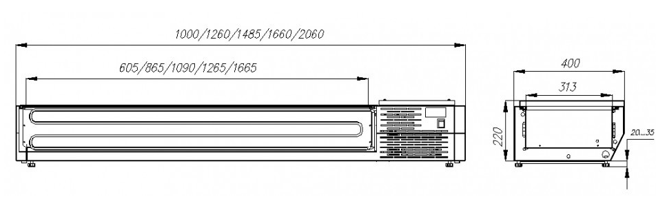 Холодильная витрина – это открытое оборудование, в котором охлаждают, непродолжительно хранят и демонстрируют уже приготовленные блюда, ингредиенты для пиццы и салатов. Его можно установить в качестве дополнительного элемента прилавков, стоек в баре, столов для пиццы и холодильных столов. Витрина подходит для эксплуатации в любых заведениях общепита и торговли. Экспозиционная поверхность и корпус сделаны из пищевой нержавейки. Благодаря пенополиуретановой изоляции, достигается уменьшение потребления электрической энергии и поддержание установленного температурного режима. Вмещается всего 7 емкостей GN1/3. При использовании специальных перемычек, которые идут в комплекте, размещают емкости меньшего размера.