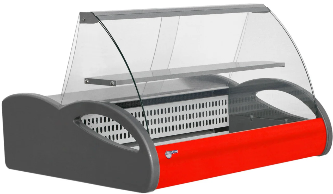 В холодильной витрине настольного типа охлаждают, непродолжительно хранят и демонстрируют всевозможные десерты, гамбургеры и кондитерские изделия. Прибор оснащен ночными шторками из органического стекла, неохлаждаемой полочкой, передним гнутым стеклом. Боковины сделаны из пластика, полка, передняя обшивка и столешница – из нержавейки, корпус – из стали с ППУ теплоизоляцией.