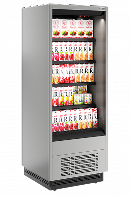 Открытая холодильная витрина – это пристенная горка с комбинированным температурным режимом: от 0С° до +7С°. Она отличается минималистичным стильным дизайном. Удобная открытая конструкция имеет боковины из энергосберегающего стеклопакета. Такая модель универсальна и подходит для залов самообслуживания. В них можно выставлять фрукты, молочные продукты, напитки, сыр, консервы, колбасы, пресервы, а также овощные, рыбные и мясные полуфабрикаты.