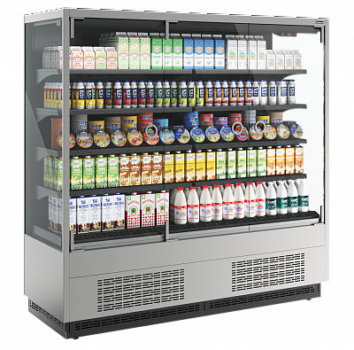 Холодильная витрина – это пристенная горка с комбинированным температурным режимом: от 0С° до +7С°. Она отличается минималистичным стильным дизайном. Витрина имеет фронт из низкоэмиссионного стекла. Такая модель универсальна и подходит для залов самообслуживания. В них можно выставлять фрукты, молочные продукты, напитки, сыр, консервы, колбасы, пресервы, а также овощные, рыбные и мясные полуфабрикаты.