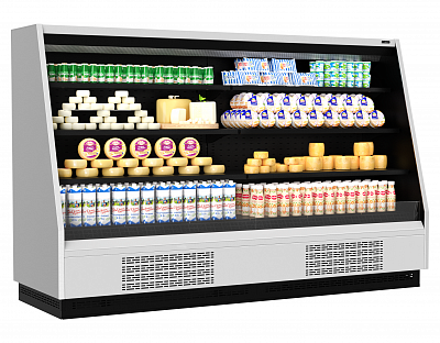Открытая холодильная витрина – это пристенная горка с комбинированным температурным режимом: от -2С° до +5С°. Благодаря скошенной поверхности она имеет пирамидальную конфигурацию. Это улучшает обзор продукции на любой полке и облегчает доступ к ней. При наличии нескольких витрин их можно установить в одну линию. Такая модель универсальна и подходит для залов самообслуживания. В них можно выставлять фрукты, молочные продукты, напитки, сыр, консервы, колбасы, пресервы, а также овощные, рыбные и мясные полуфабрикаты.