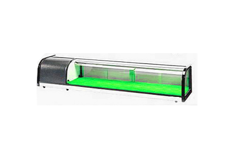 Холодильная витрина предназначена для демонстрации и временного хранения суши, ролл и так далее. Ножки прибора выполнены из пластика, двери – из поликарбоната, камера – из нержавейки. В комплектации идут маты для выкладки из пластика.