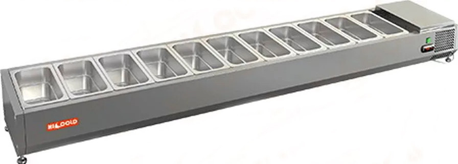 Холодильная витрина настольного типа нашла свое применение в организациях общепита и торговли. Ее предназначение состоит в непродолжительном хранении, охлаждении и демонстрировании гарниров, салатов, закусок и прочих готовых блюд. Аппарат имеет ножки. А конструкция сделана из нержавейки.