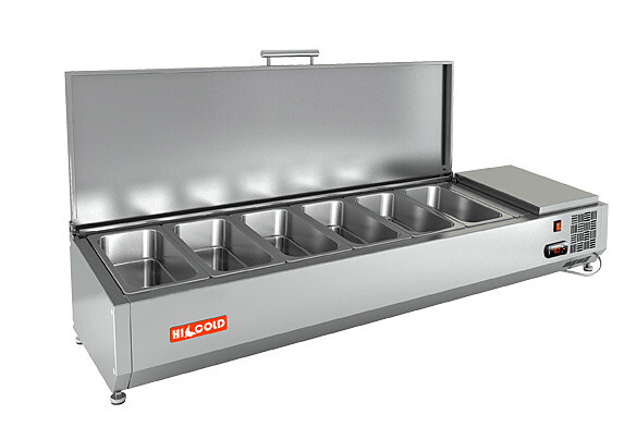 Холодильная витрина настольного типа нашла свое применение в организациях общепита и торговли. Ее предназначение состоит в непродолжительном хранении, охлаждении и демонстрировании гарниров, салатов, закусок и прочих готовых блюд. Аппарат имеет ножки. А конструкция сделана из нержавейки.