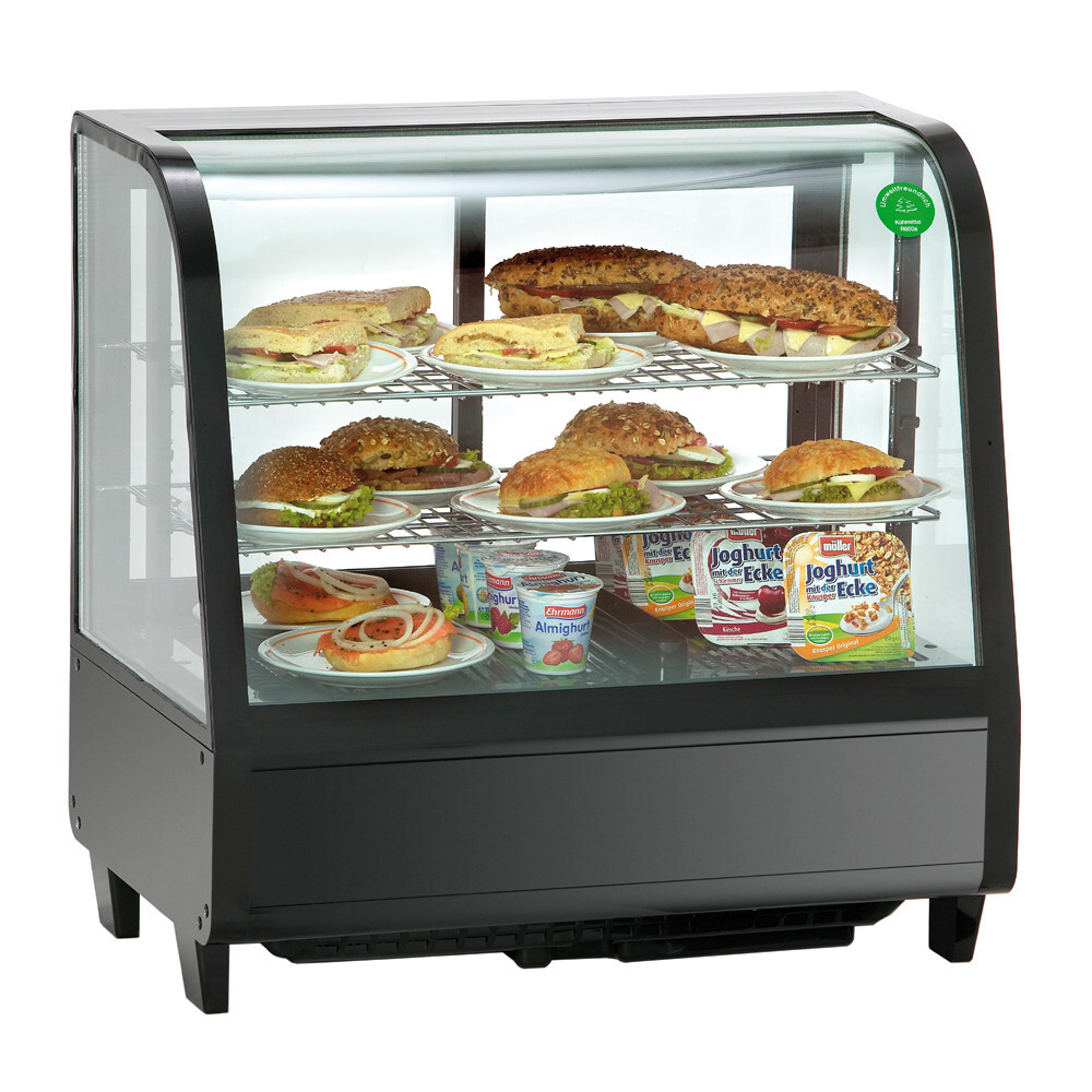 Холодильная витрина используется в организациях торговли и общепита для демонстрирования, охлаждения и непродолжительного хранения салатов, напитков, десертов и других продуктов. Округлое фронтальное стекло сделано из однокамерного стеклопакета, дно – из нержавейки, а несущие конструкции и корпус – из пластифицированного металлического каркаса и ABS-пластика.