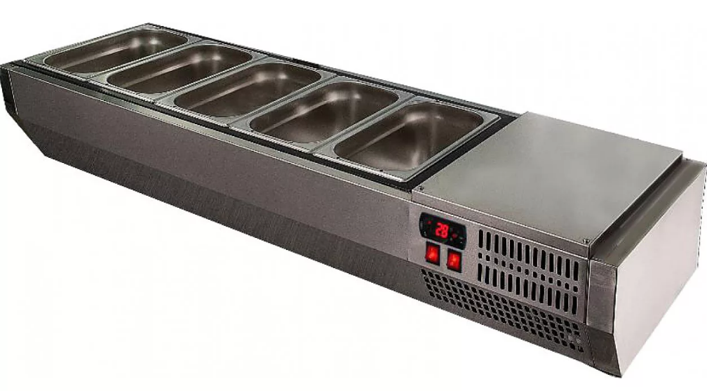 Витрина предназначена для демонстрирования, охлаждения и временного хранения салатов и пиццы в организациях общепита и торговли. Долгий срок эксплуатации и прочность витрины обеспечивается стальной обшивкой корпуса. Техника может работать при относительной влажности воздуха до 80% и температуре окружающей среды до 32°C. В комплектацию не входят гастрономические емкости.