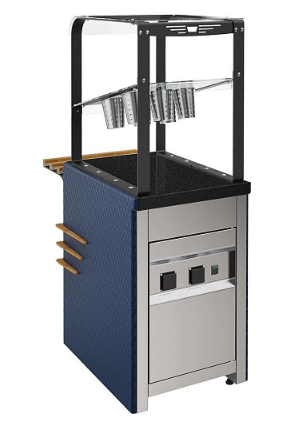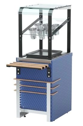 - опция – направляющие для подносов, фасады, логотип заказчика на стеклянных элементах.