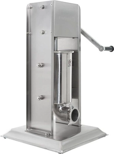 Вертикальный колбасный шприц – оборудование для наполнения оболочек мясным фаршем с помощью вертикального расположения цилиндра. Такая конструкция обеспечивает удобство работы с большими объемами и стабильное равномерное заполнение без воздушных пустот. Механизм подачи фарша позволяет точно регулировать скорость и плотность наполнения, а устойчивое вертикальное положение облегчает загрузку продукта и обслуживание прибора. Вертикальный шприц применяют на мясных производствах, в цехах общественного питания и на предприятиях, выпускающих колбасы, сосиски и другие фаршевые изделия.