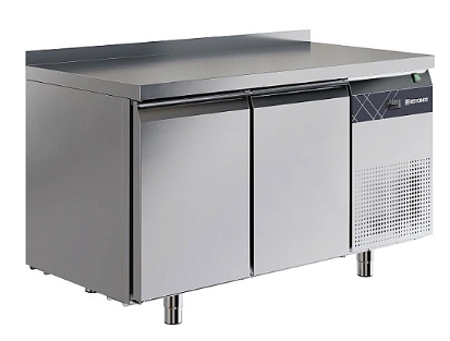 Морозильный стол используется с целью хранения замороженных продуктов и полуфабрикатов, а также для подготовки ингредиентов в процессе приготовления в организациях общепита и торговли. Конструкция включает в себя встроенный холодильный агрегат с боковым размещением, электронную систему управления и две глухие распашные двери, оснащенные петлями с доводчиками. Рабочая поверхность и корпус с цельнозаливной конструкцией изготовлены из нержавейки марки AISI 430. В стандартную комплектацию входят две полки. Толщина столешницы и теплоизоляционного корпусного слоя составляет 50 мм.