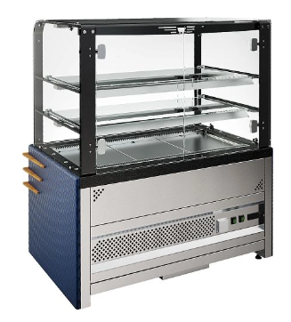 Неохлаждаемая витрина предназначена для использования в составе раздаточных линий. В ней недолго можно хранить и раздавать различных кондитерские изделия. Особенность такой витрины состоит в скругленных полках из стекла на стойках из металла. Благодаря такому дизайну она не отвлекает на себя внимание и отлично гармонирует с фасадом, не мешая выбору продукции. Витрина имеет рейлинги из натурального дерева с металлическими проставками.