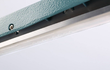 Корпус прибора рассчитан на регулярную работу, а управление сведено к минимуму: оператор регулирует время нагрева в зависимости от толщины пакета. После запайки край остается ровным и надежным, не расходится при нагрузке.